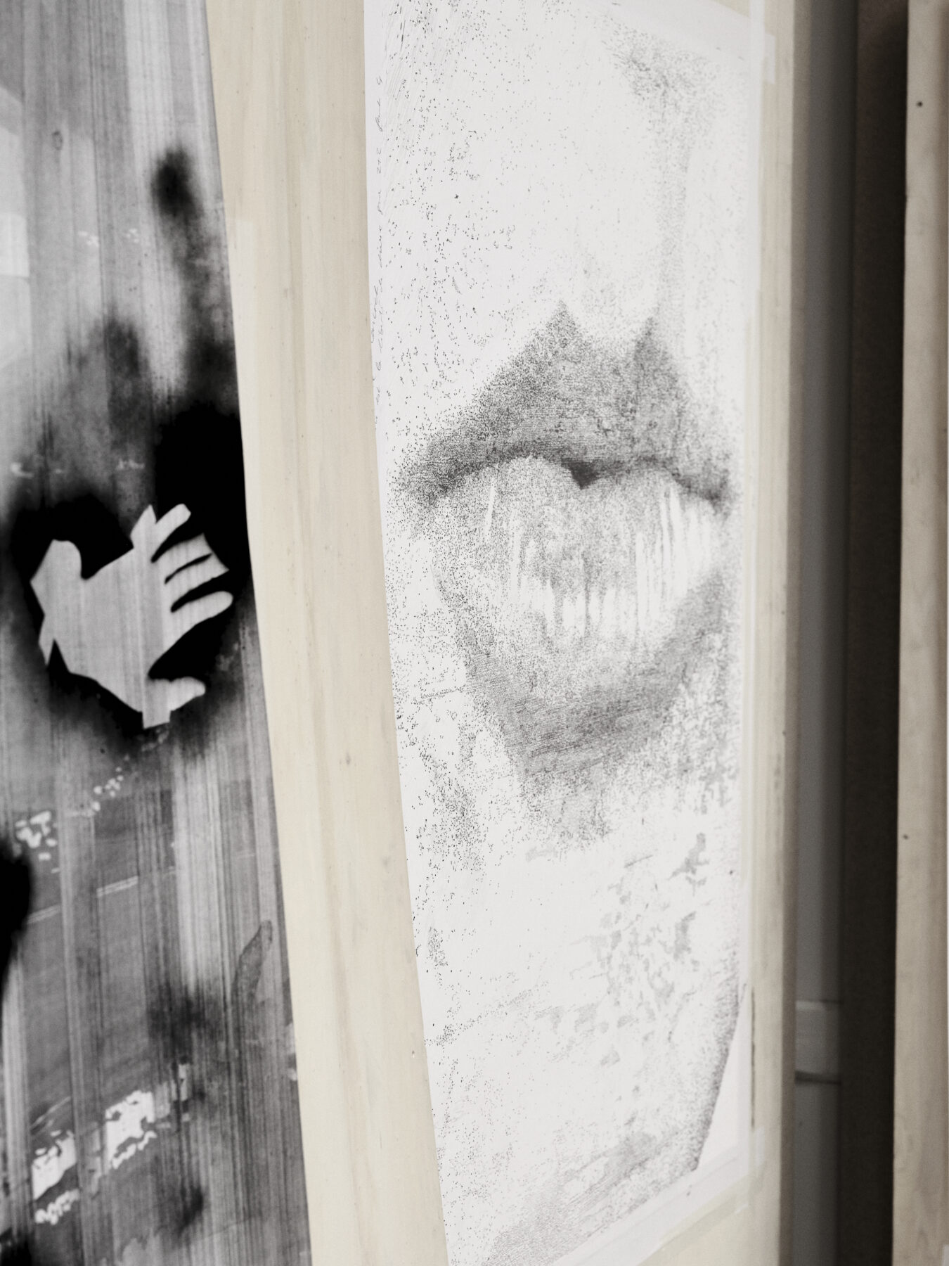 graphite on paper, spray, lavis, 160 x 140 cm